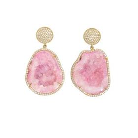 18k Gold Plated Pink & Aqua Green Geodes Double Prong ...