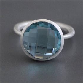 18k Gold Plated Sky Blue Quartz Gemstone Bezel Set Ring