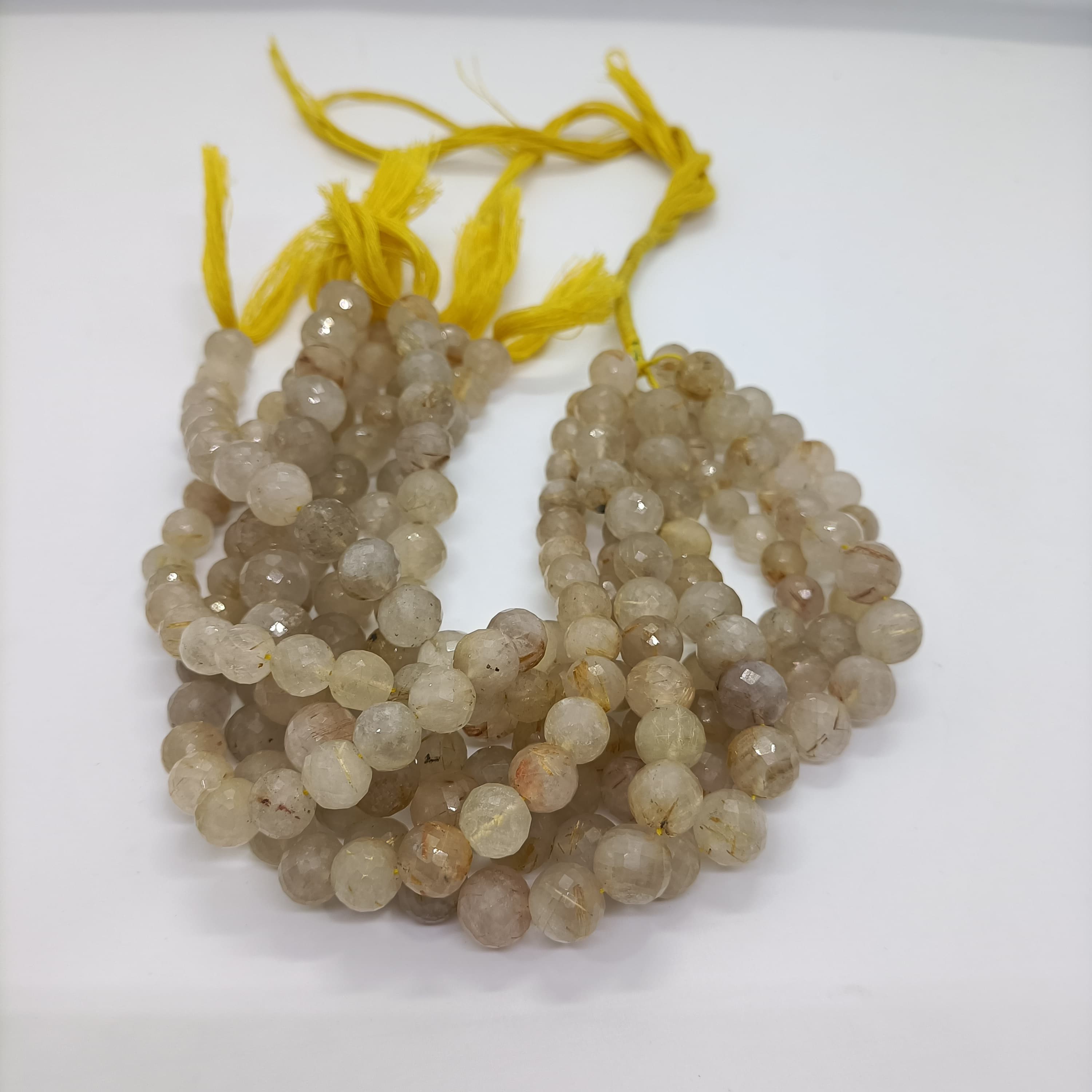 Natural Golden Rutile Faceted Round Gemstone Beads