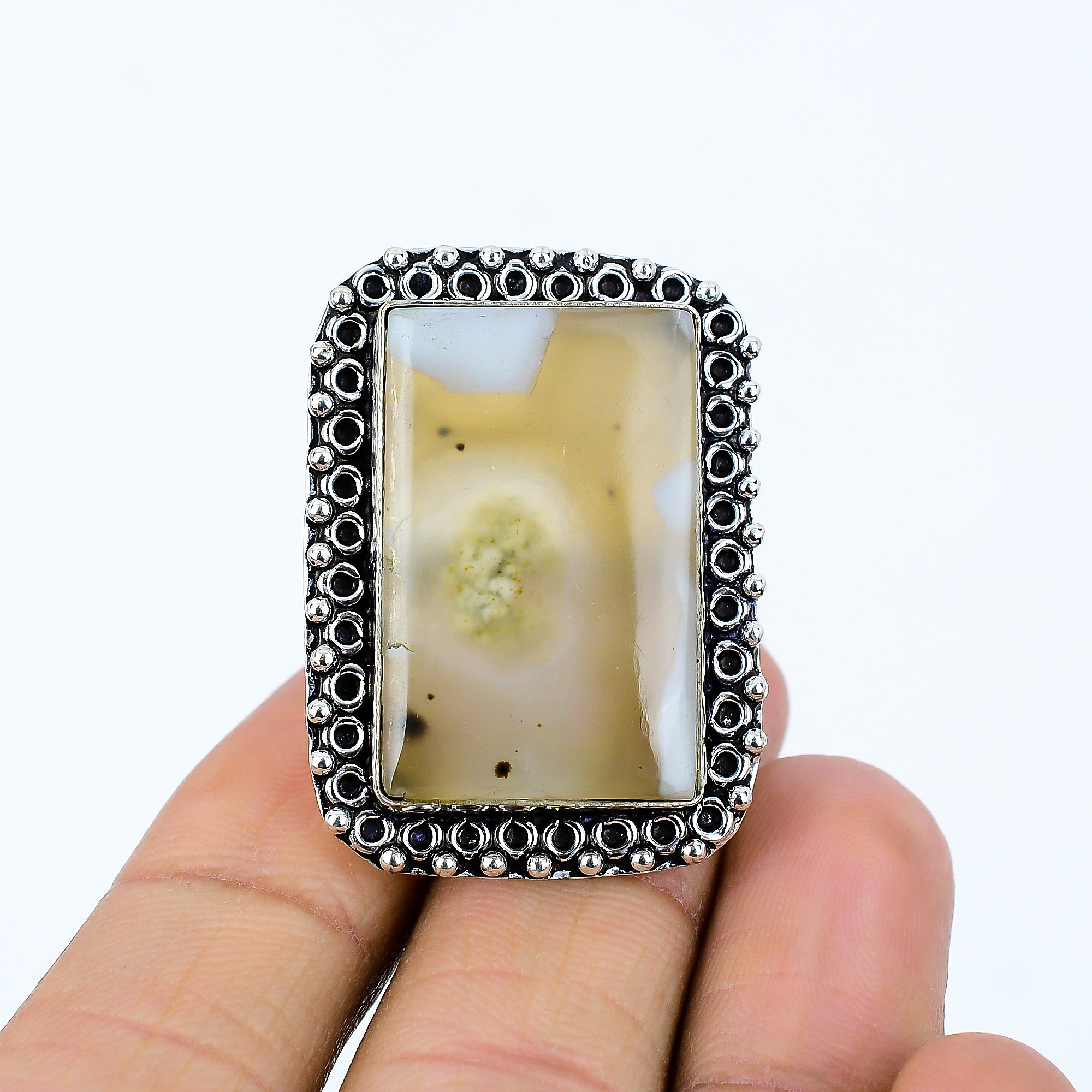 Natural Montana Agate Rectangle Gemstone Silver Rings