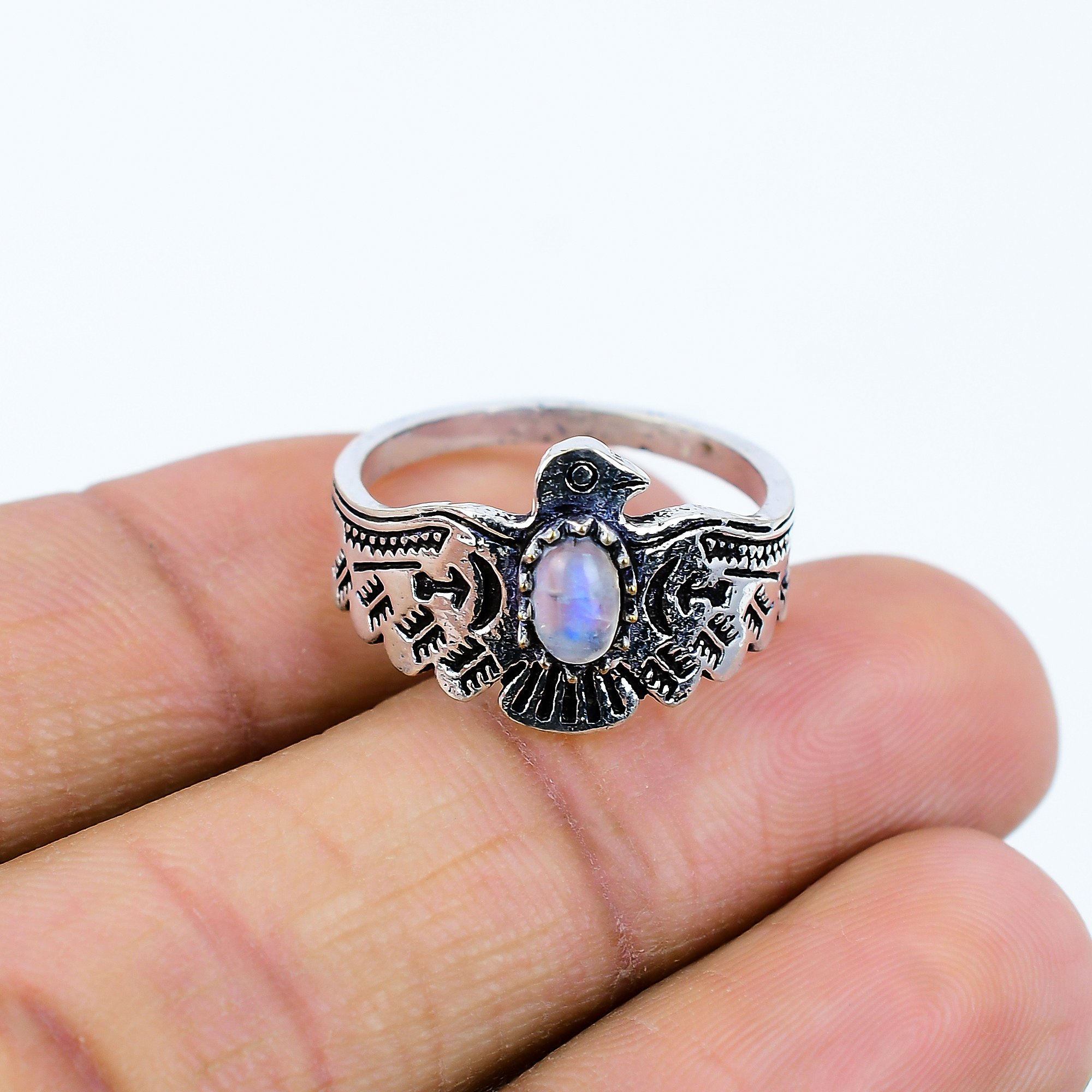 Natural Rainbow Moonstone Gemstone Silver Rings