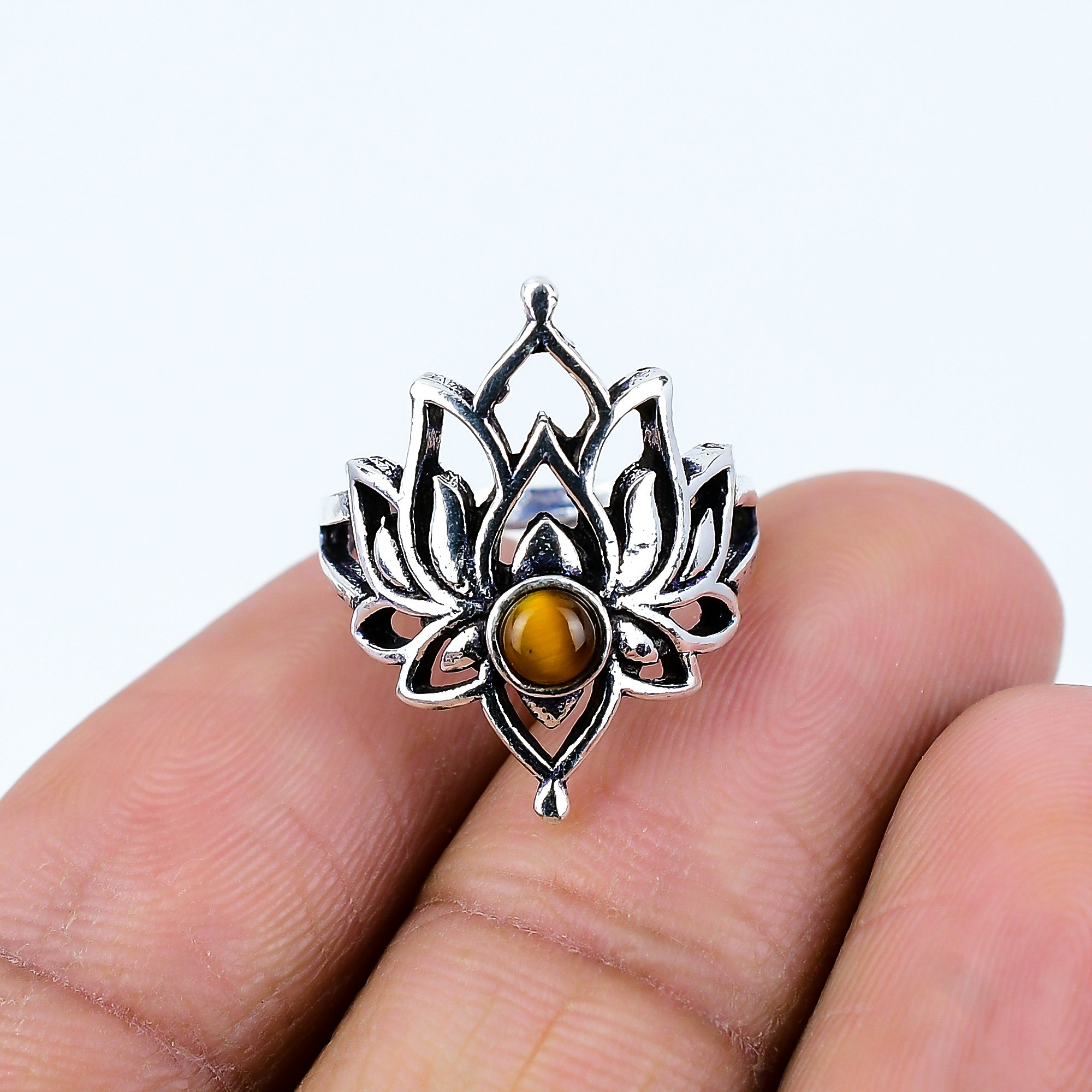 Sterling Silver Natural Tiger Eye Gemstone Rings