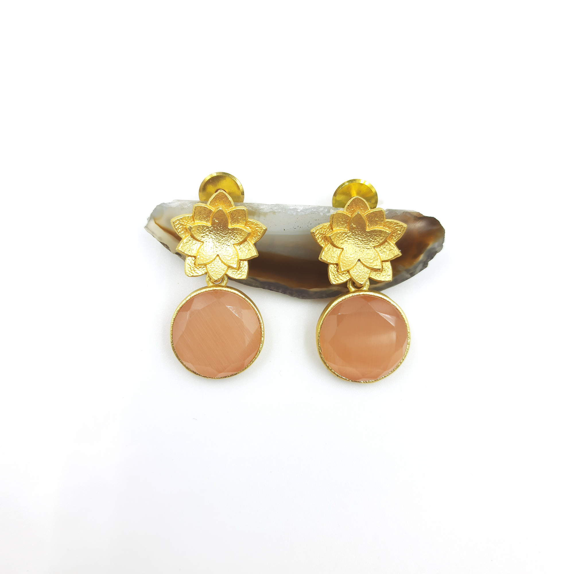 18k Gold Plated Round Shape Peach Monalisa Gemstone Dangle Earrings