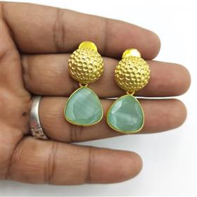 18k Gold Plated Trillion Shape Aqua Chalcedony Gemstone Earrings