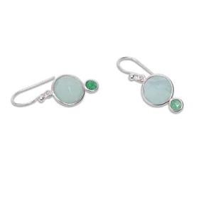 925 Sterling Silver Round Aqua Chalcedony and Raw Emerald Gemstone Dangle Earrings