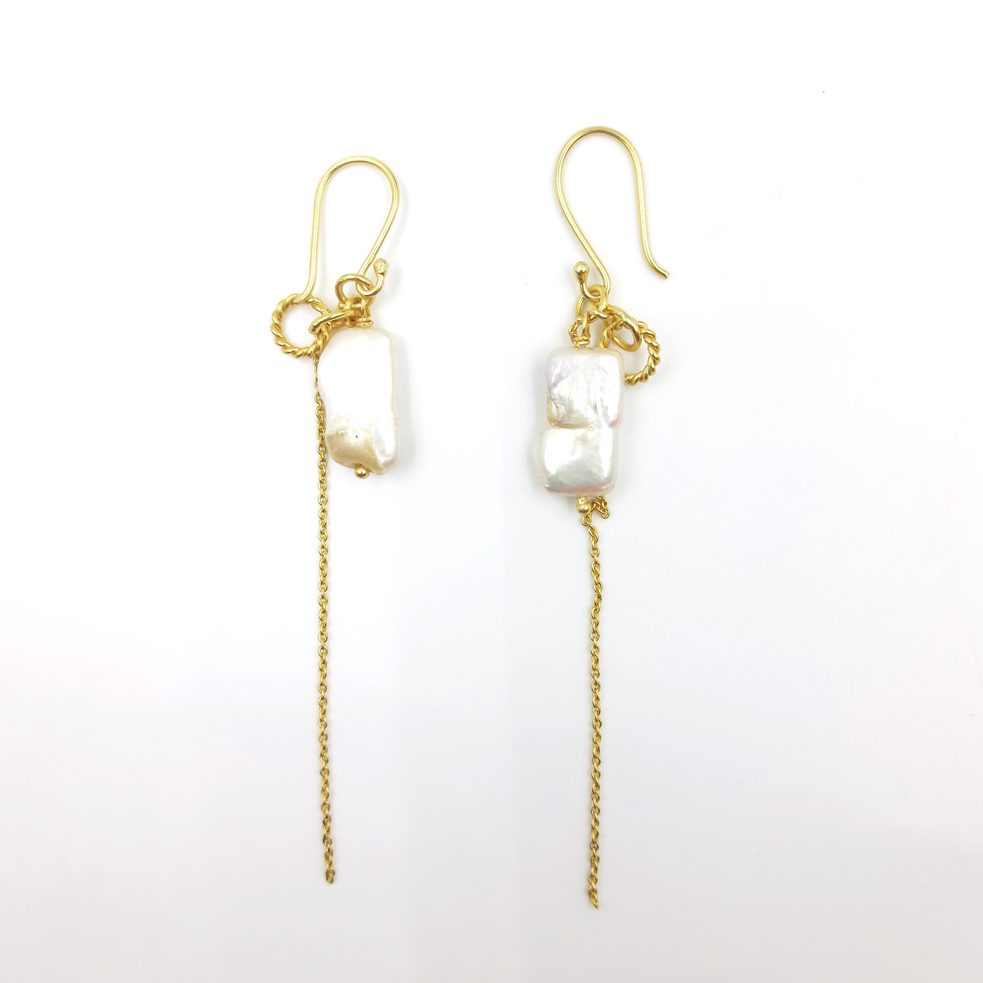 Long Hanging Chain Natural Pearl Gemstone Hook Earrings