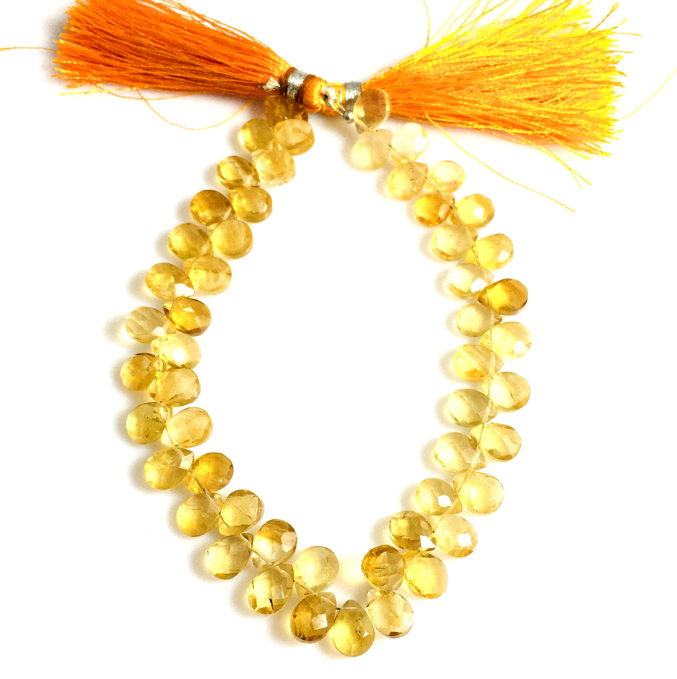 Natural Citrine Pear Shape Gemstone Beads Briollets 10 Inches Strand