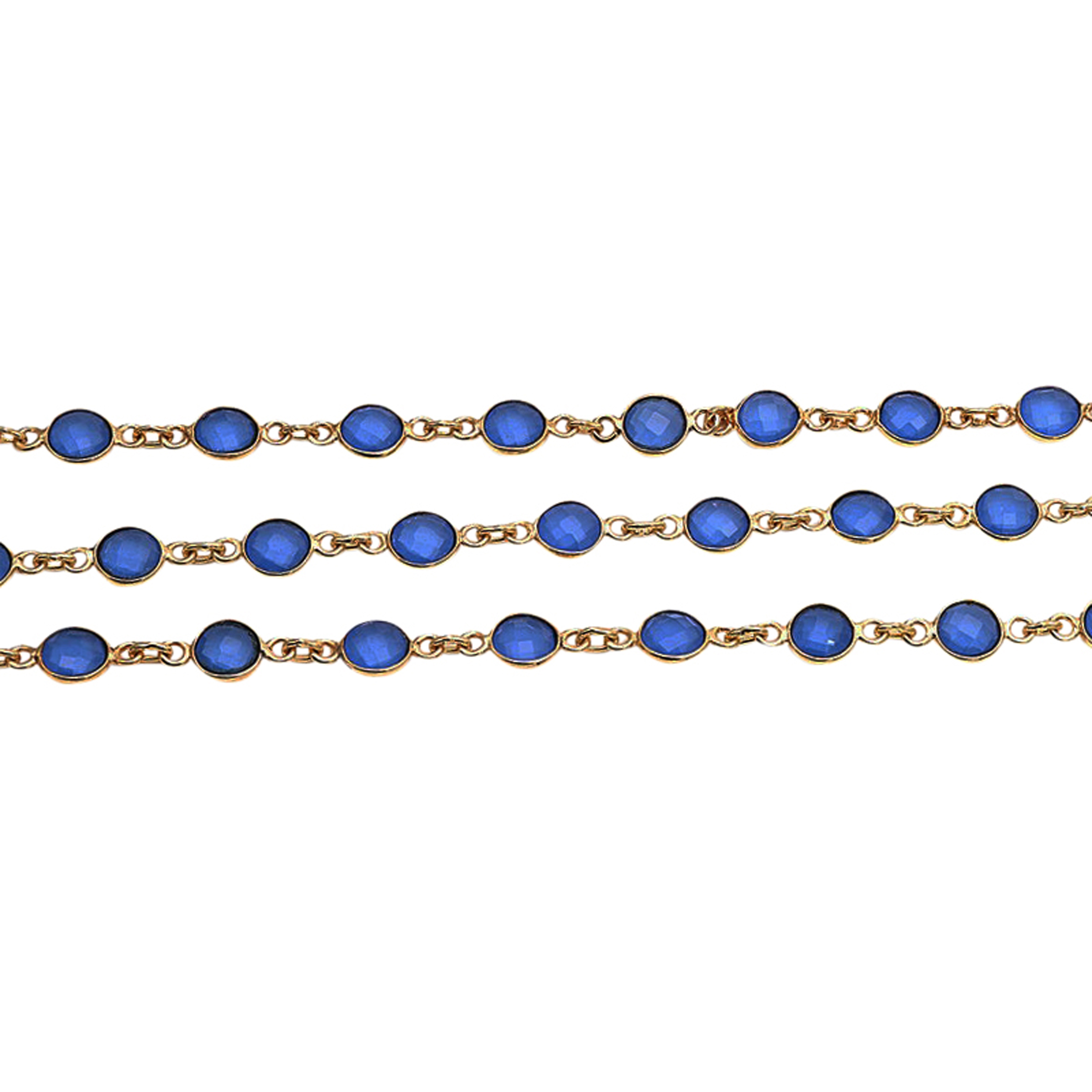 18k Gold Plated Round Blue Chalcedony Gemstones 925 Sterling Silver Bezel Set Connector Chains