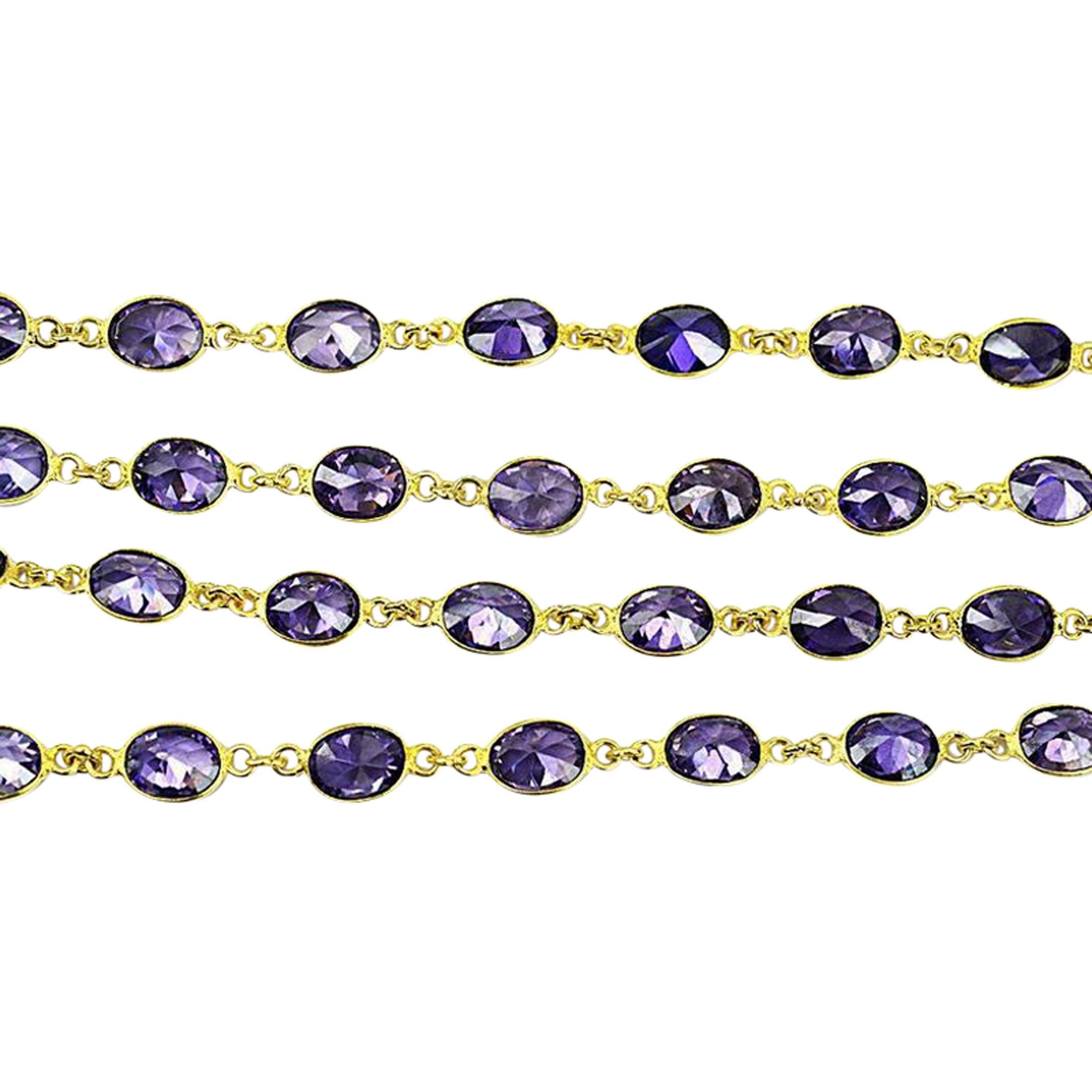Amethyst Quartz Oval Shape Gemstones Bezel Connectors 925 Sterling Silver Chains