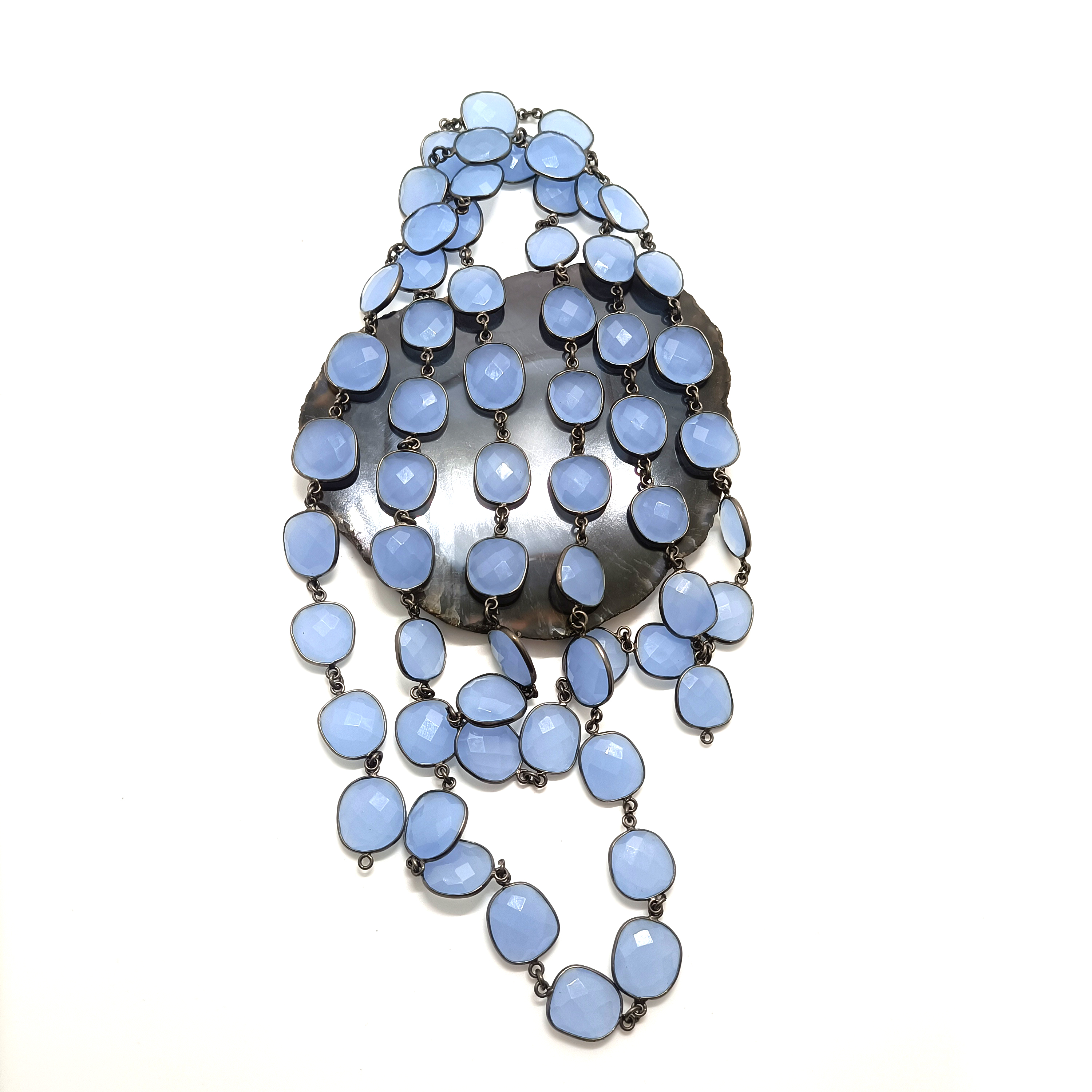 Wholesale Blue Chalcedony Nuggets Gemstone Bezel Continuous Chains